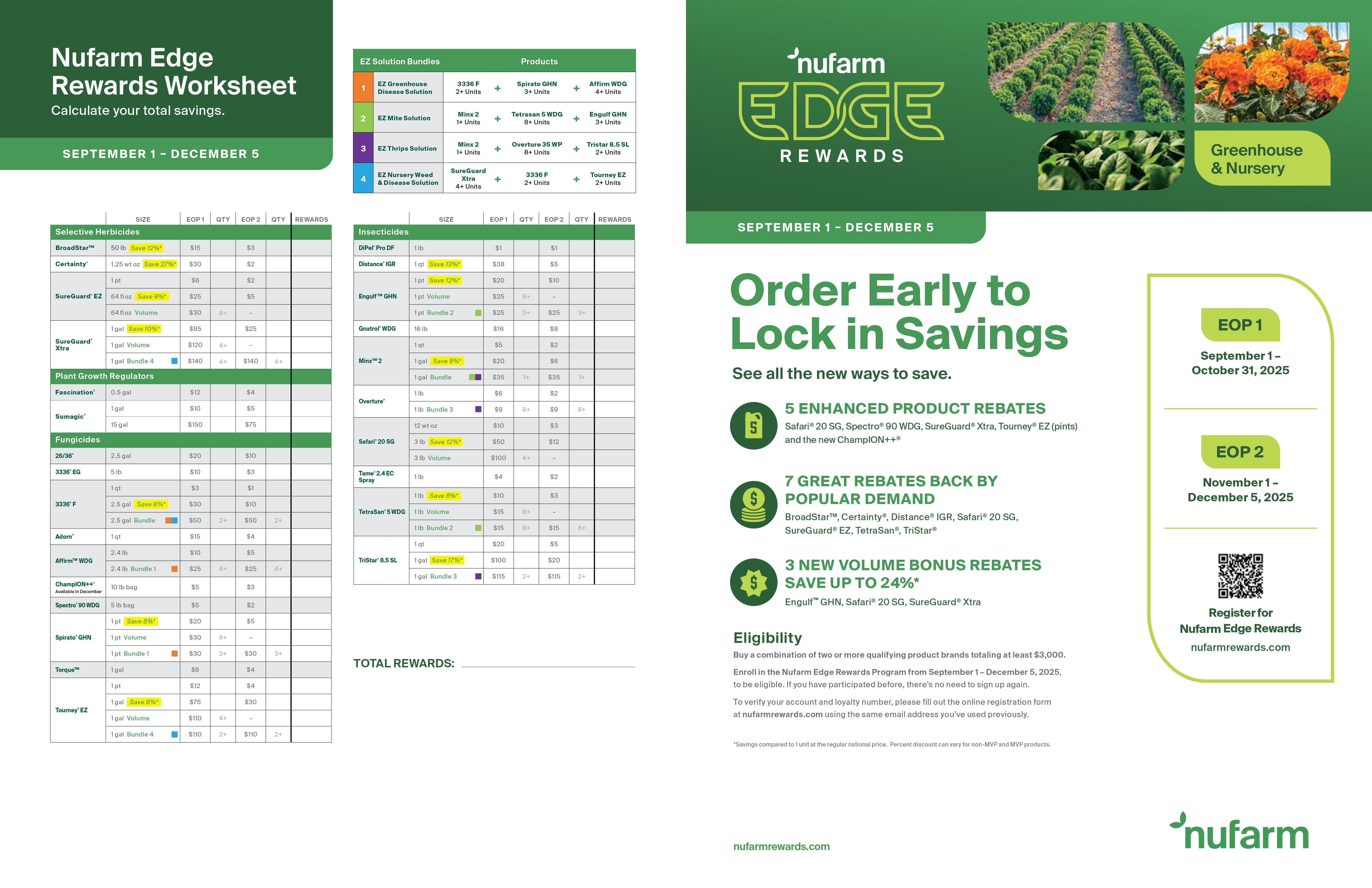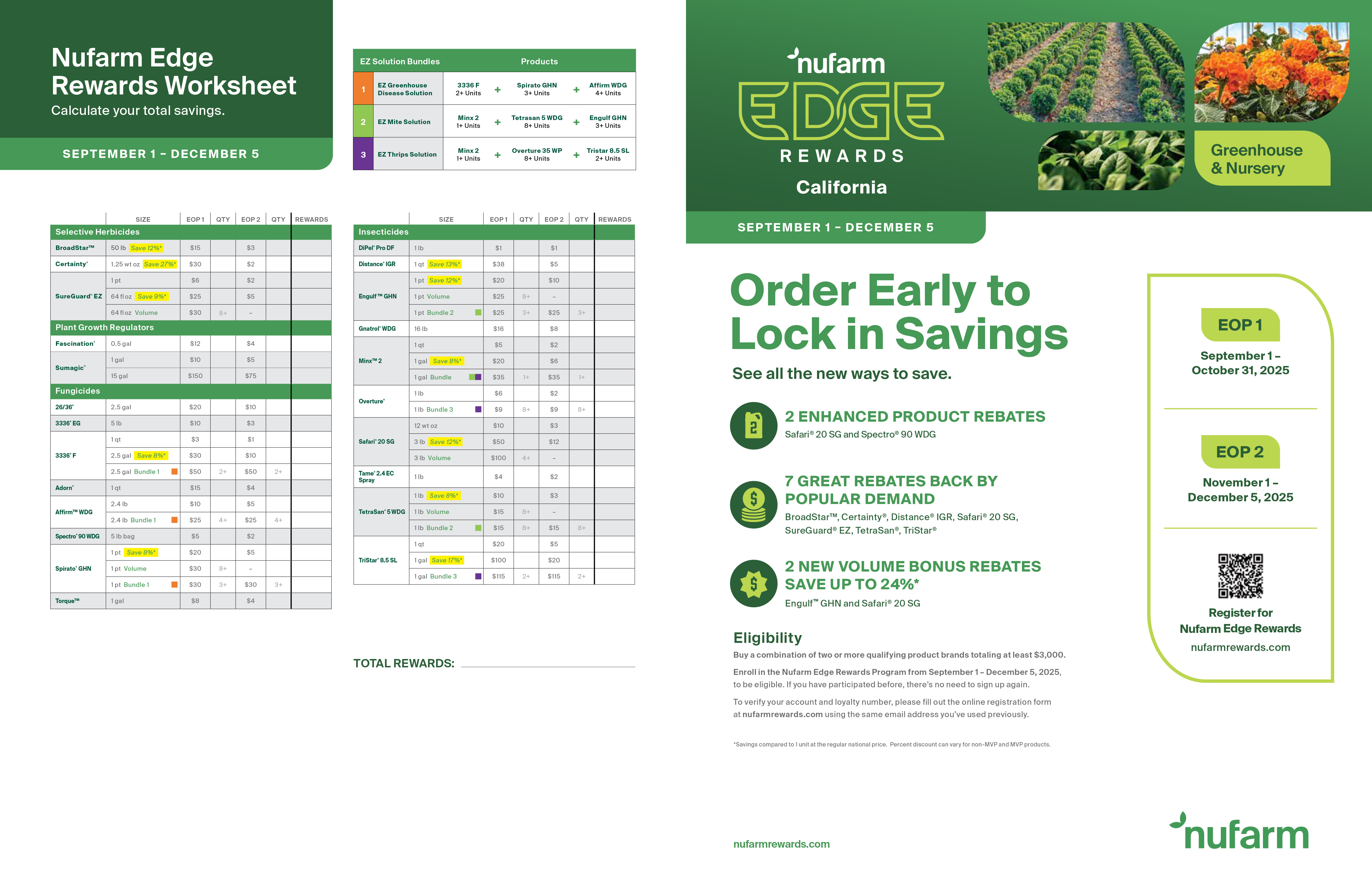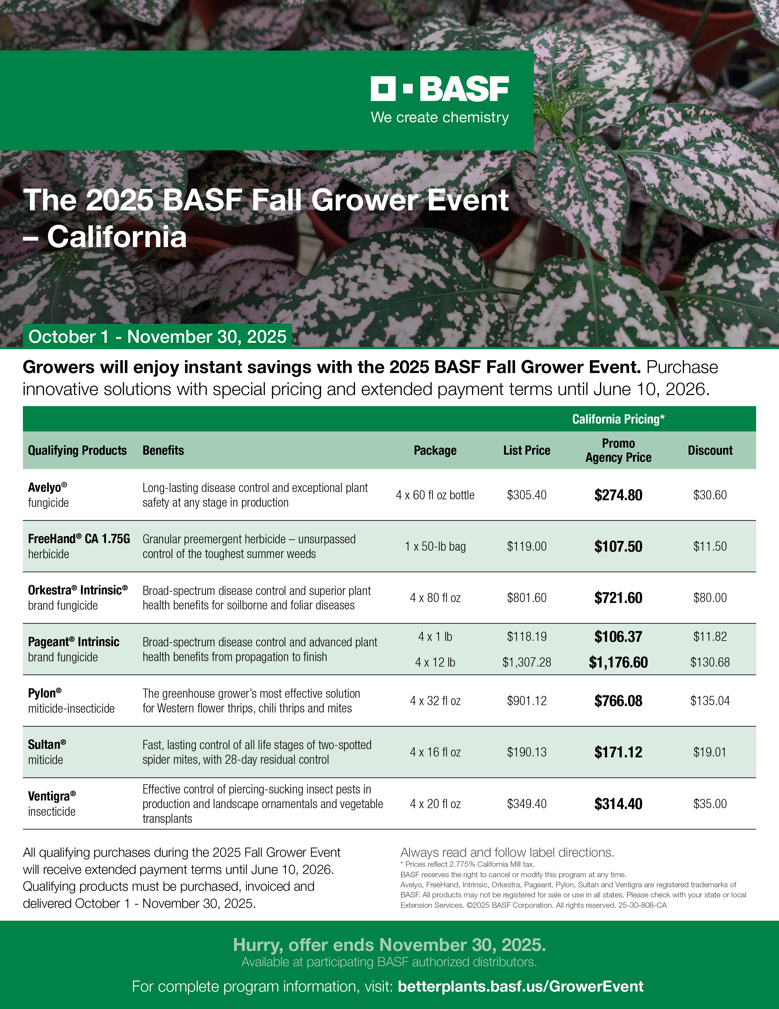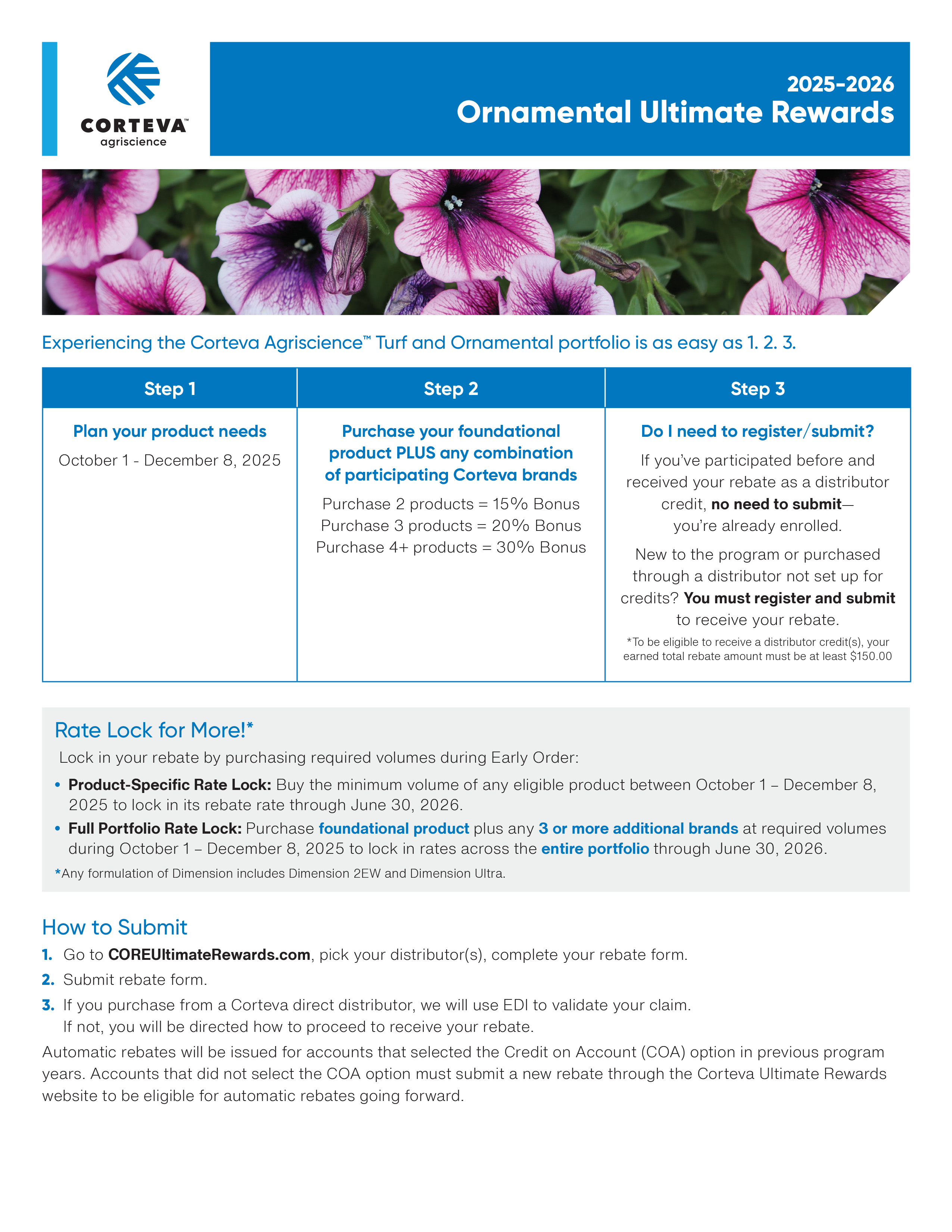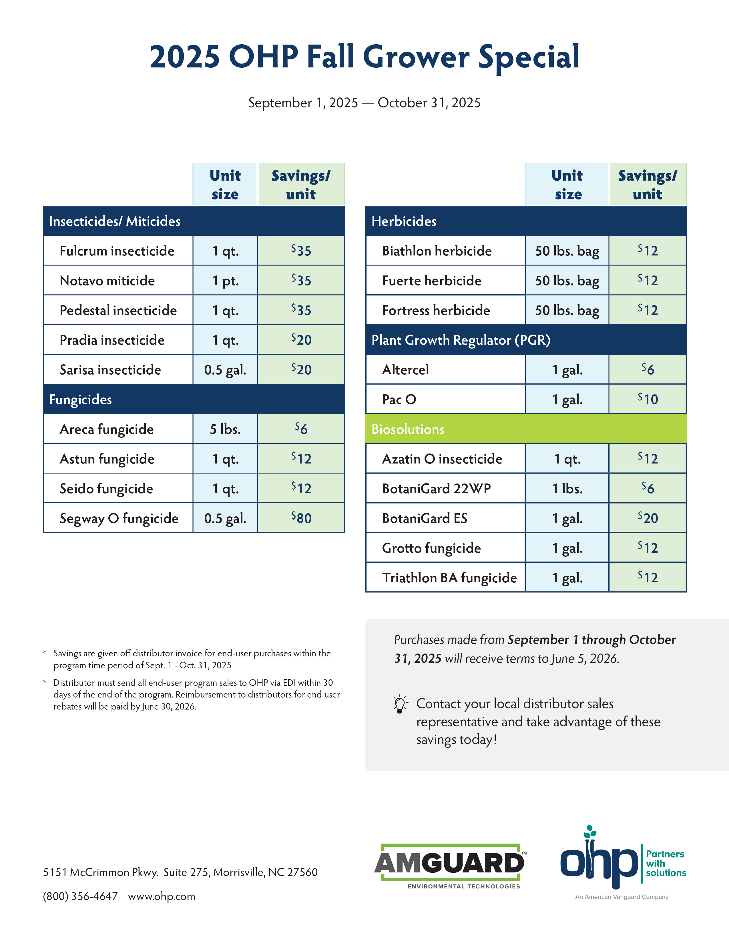 Your best opportunity of the year to take advantage of additional rebates, discounts, and extended payment terms on your Crop Protection Product needs from BFG.